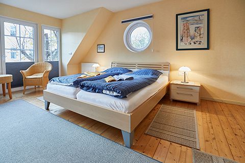 Im Garten von Haus Meyer-Teerling liegt das Ferienhaus. Es ist ein 2005 erstellter Neubau mit einem gehobenen Ambiente. Auf 85m² und drei Etagen bietet es viel Platz für zwei bis vier Personen.Der offene Wohn- und Küchenbereich erstreckt sich über die gesamte untere Etage. Hier kann sich Ihr ganzer Tag abspielen: Vom Frühstück bis zum abendlichen Fernsehprogramm. Um die eigene Versorgung so komfortabel wie möglich zu gestalten ist die Küchenzeile vollwertig und modern ausgestattet: Dunstabzugshaube, Toaster und eine Geschirrspülmaschine stehen zur Verfügung. An kalten Tagen sorgt die Fußbodenheizung im ganzen Haus für eine angenehme Wärme. Und an warmen Tagen lockt direkt vor der Tür der Garten mit seinen Strandkörben und Sitzecken.