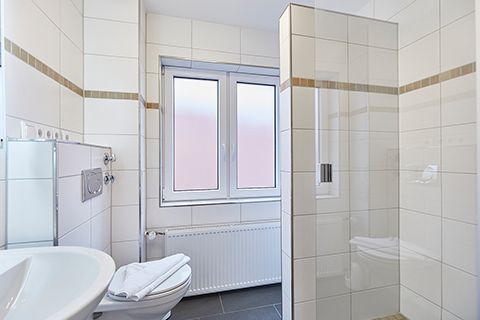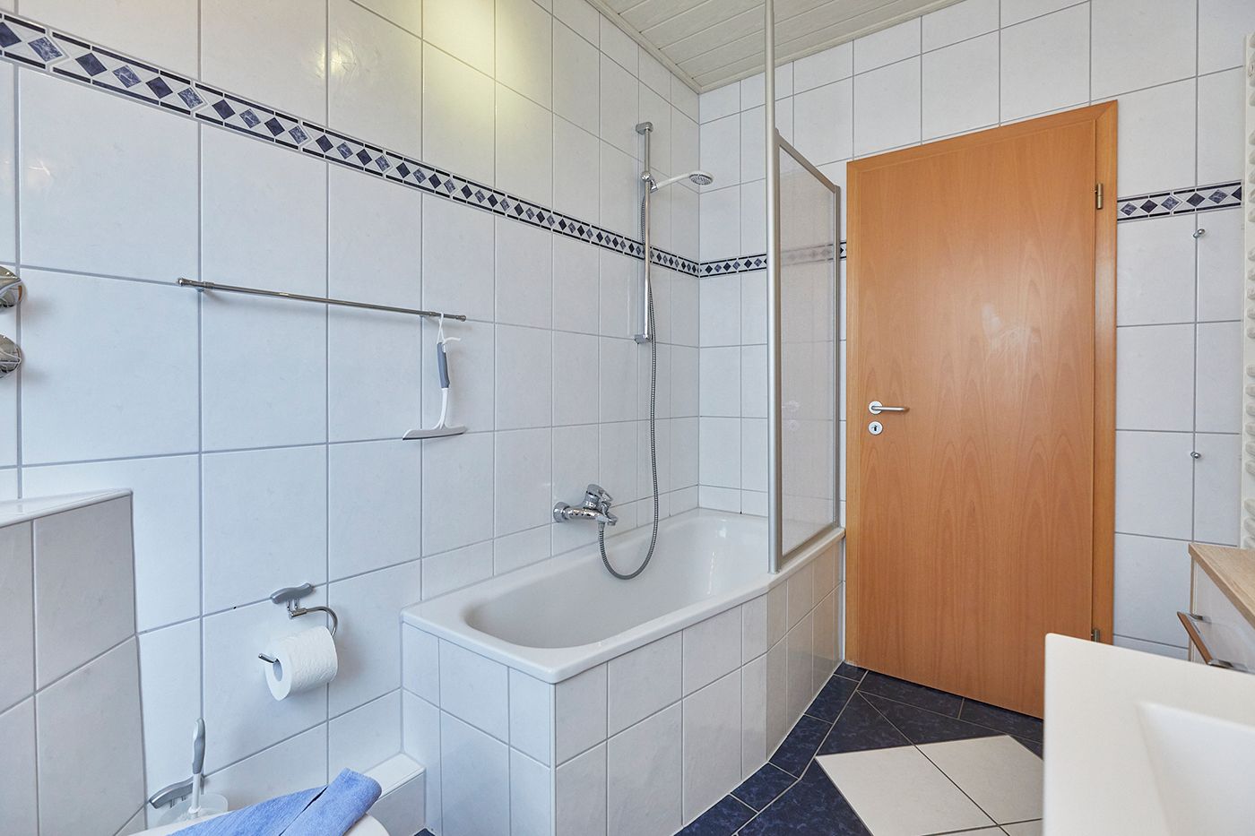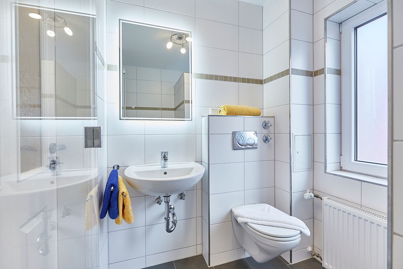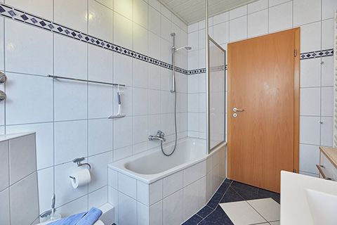 Das Bad ist mit Dusche und WC und Fön ausgestattet.
