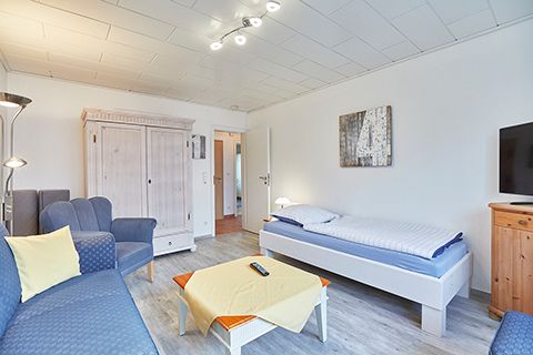 45m² Platz für zwei Personen bietet unsere kleinste Ferienwohnung. Sie ist aufgeteilt in einen Wohnraum, ein Schlafzimmer und ein Bad mit Dusche und WC. Der Wohnraum bildet das Herzstück der Wohnung. Eine kleine, aber feine Küchenzeile mit Kühlschrank, 2-Plattenherd und Esstisch ermöglicht Ihnen die Selbstverpflegung während Ihres Urlaubs.Kabel-Fernsehen ist selbstverständlich vorhanden, darüber hinaus können Sie auch Ihre Lieblings-DVD oder -Blue-ray-Disc über die vorhandene Anlage abspielen. Kostenloses WLAN ist in der Wohnung vorhanden.